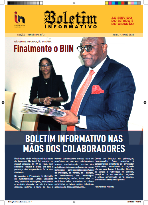 SENSIBILIZAÇÃO VINCADA EM RESULTADOS SATISFATÓRIOS O Presidente do Conselho de Administração da Imprensa Nacional-E.P., Lando Sebastião Teta, efectuou uma visita de seis dias (14 a 20 de Abril) às Províncias de Benguela e Huambo com vista a sensibilizar as Instituições Públicas dessas regiões do País que não trabalham com a Organização, desobedecendo ao Despacho Presidencial […]