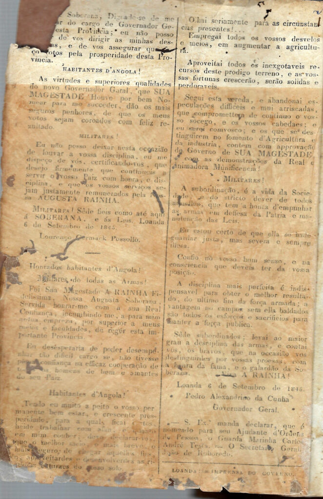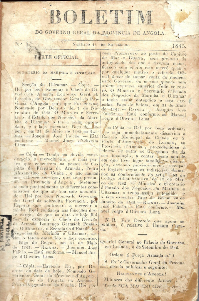 a) Do n.º 1, de 13 de Setembro de 1845 ao n.º 94, de 26 de Junho de 1847, era chamado de Boletim do Governo-Geral da Província de Angola, mais tarde Boletim Official do Governo-Geral da Província de Angola (a partir do n.º 95, de 3 de Julho de 18475
