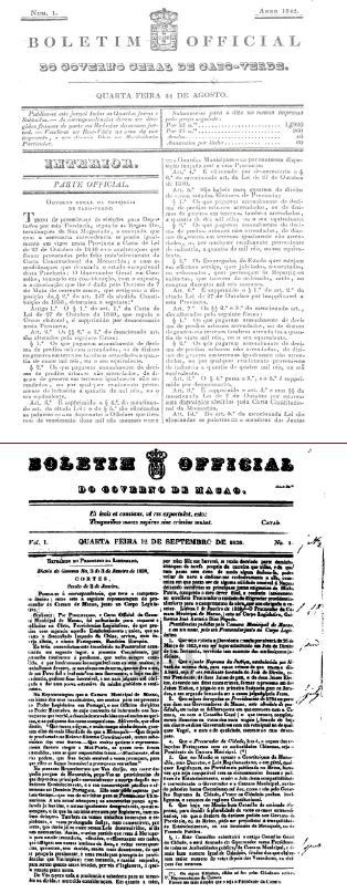 i) Baseado em dados do site Arquivo de Macau, no período compreendido entre 1850-1999 faziam-se um total de 12 publicações anuais do Boletim Official de Macau, sendo um facto interessante que actualmente o Boletim Oficial da Região Administrativa Especial de Macau é publicado em duas línguas no mesmo exemplar (chinês e português).
